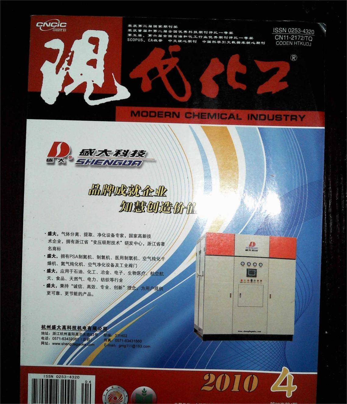 《现代化工》(月刊)创刊于1980年。自创刊以来,《现代化工》一直坚持以战略性、工业性和信息性为特色,一贯坚持大化工、全方位的服务方向,致力于科技成果向生产力的转化。一方面以国内外化工新技术、新工艺、新兴边缘学科及高新技术成就为报道重点,一方面也报道企业技术改造的先进经验、适用技术及技术转让信息,同时也重点报道化工系统的方针政策,探讨当前的热点和焦点话题、行业存在的问题及应采取的措施,分析和预测化工产品的市场状况。《现代化工》报道范围涵盖石油、天然气、石化、有机化工、无机化工、精细化工和日用化工等各个方面。经过20多年的发展和改进,《现代化工》已在化工系统享有很高的声誉,并多次获奖。获奖情况:2002年全国石油和化工行业优秀期刊评比一等奖和广告单项奖;1996年第二届全国优秀科技期刊一等奖;1992年北京市全优期刊奖;第一届、第三届国家期刊奖;建国60周年有影响力期刊;中国期刊方阵双奖期刊。
