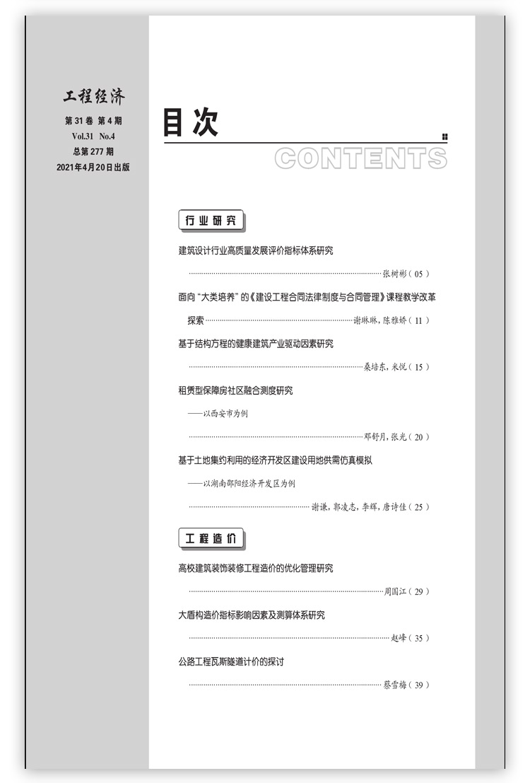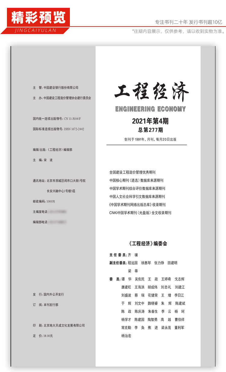 《工程经济》杂志是由中国建设工程造价管理协会和建设银行委员会主办,于1991年创刊,具有国际国内双刊号的国家项目管理类刊物。