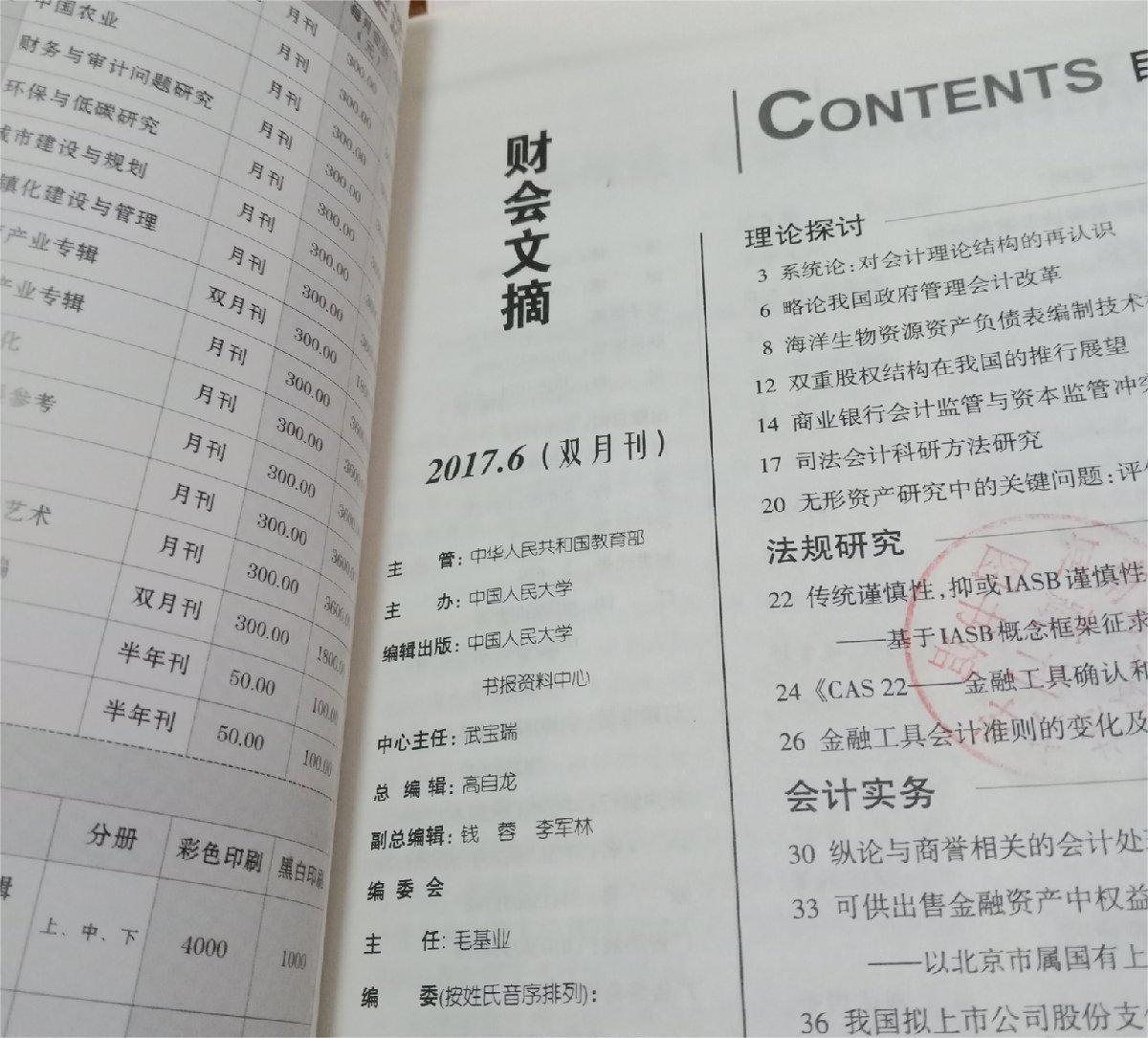 财会观察、理论探讨、财会业务、法规研究、审计园地、国际比较与借鉴。