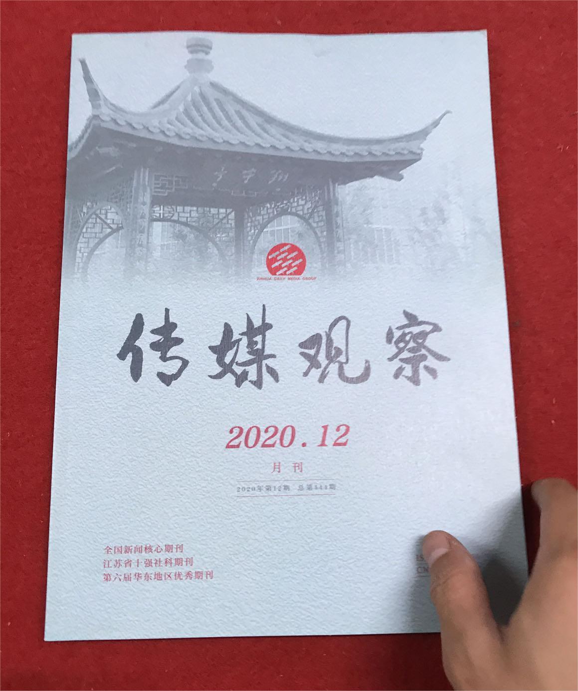 《传媒观察》(月刊)创刊于1984年,由新华日报报业集团主办。该刊强调舆论在现实生活中的作用,内容以讨论现实政治、经济、社会问题为主,并报道国际时事、地方通讯。为传媒相关人士提供新颖、实用、有价值的新观念、机关报思维、新经验、新技巧,促进传媒在新的背景、新的框架下改进宣传艺术、提高引导水平。荣获中国新闻核心期刊;江苏省优秀期刊、中文核心期刊(2004)、中文核心期刊(1992)北大2008版核心期刊。