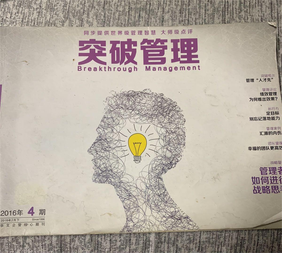 《突破管理》半月刊以精通“专业”为宗旨,以提升经理层管理者管理方法和技术为己任。主要内容包括“战略管理”、“管理前瞻”、“管理实务”、“管理艺术”、“营销管理”、“人力资源管理”等多个方面,全面为管理者提供先进的管理方法、手段、技术。