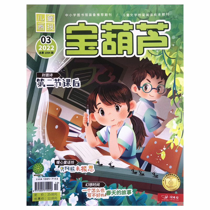 《宝葫芦》是面向6-8岁儿童的文学杂志,特别适合小学低年级学生阅读。以低幼文学为主打,兼有百科知识和其他小品文栏目,既有贴近儿童成长的生活故事,又有介绍自然科学和社会科学的知识故事,还有充满奇思妙想和美好情感的童话故事,内容精彩纷呈。