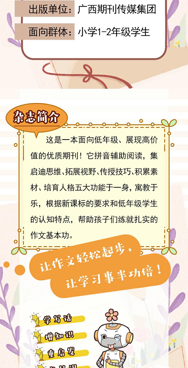 《作文大王(小学版)》(月刊)创刊于1994年,是由广西师大出版社;中央教科所基础教育课程教材研究中心主办的作文刊物。本刊始终把“为基础教育服务,推进作文教学改革”作为自己的办刊定位,大力提倡“自由的表达、愉快的抒写、平等的交流”的办刊理念,在密切关注基础教育理论、推动语文教学改革的同时,努务为广大中小学生读者及教师提供最新的作文教育理论支撑下的作文教学模式。