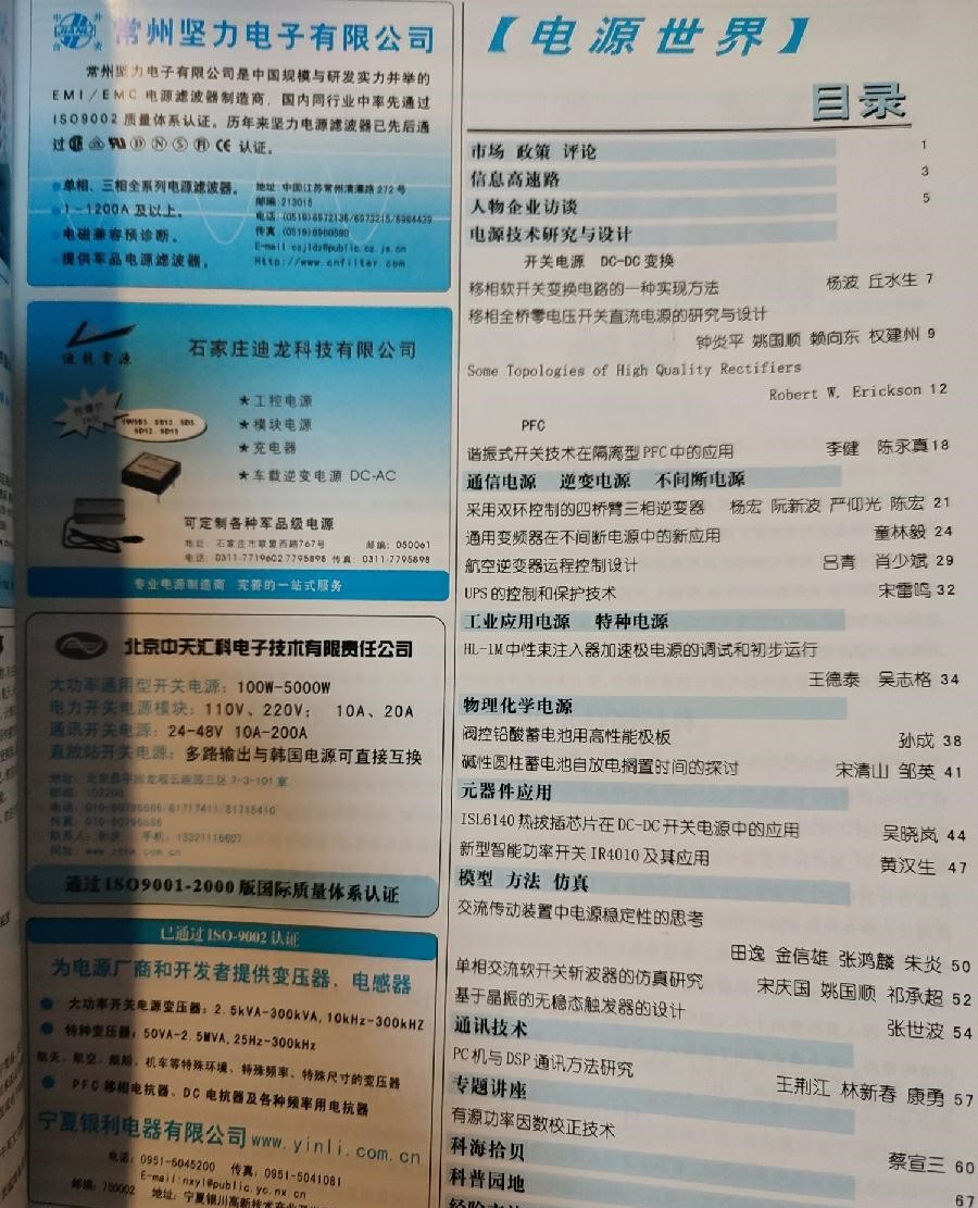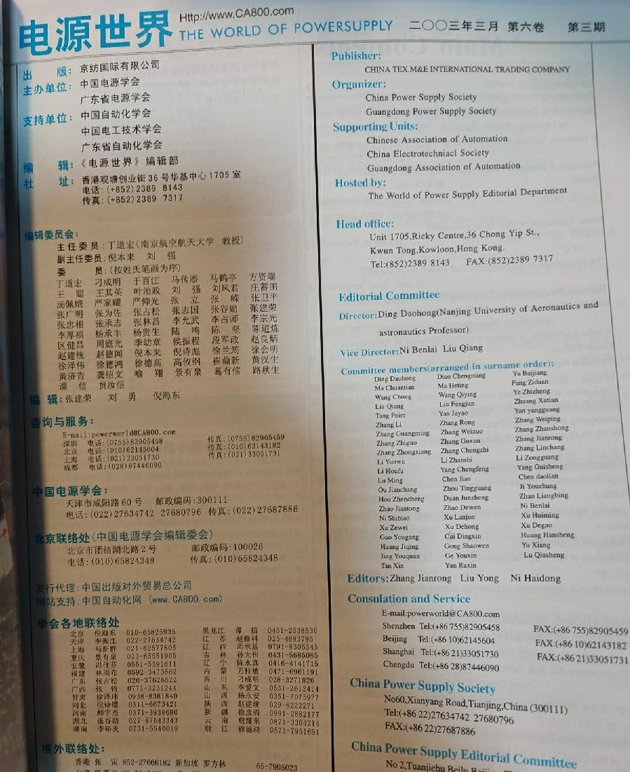 《电源世界》一份面向电力工业和电力设备制造产业,技术与产经相结合,多种媒介形式立体出版,集权威性、导向性、实用性、信息性于一身的大型综合性媒体技术版——传承科技服务电力立足于技术进步与普及,栏目包括:专题特稿,技术与应用,政策与标准,讨论与建议,经验交流,可靠性技术,国际电力,质量监督,企业产品纵横市场版——致力于记录产业变革关注企业发展洞察市场商机以产业政策、资讯、行业分析、评论为主,栏目包括:资讯,关注,特别策划,市场观察,企业成长,人物特写,对话,管理,商情自创刊以来,始终坚持“三位一体”办刊特色,实现纸介期刊、网站、光盘多种形式的立体出版,刊网互动,每季度还免费赠送海量信息光盘,更多精彩、更多资讯,真正搭建起连接电力行业用户与电力设备制造业供应商之间沟通的立体平台。