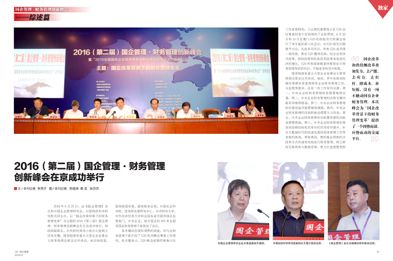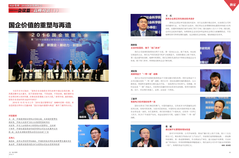《国企管理》杂志是国务院国资委系统中,惟一以中国社会科学院工业经济研究所专家团队作为学术依托,由中国企业管理研究会参与主办的国内外公开发行的中央财经媒体。以“专注国资国企、效力国家经济”,影响国资国企战略决策层、监督管理层、经营和学术层人士著称。