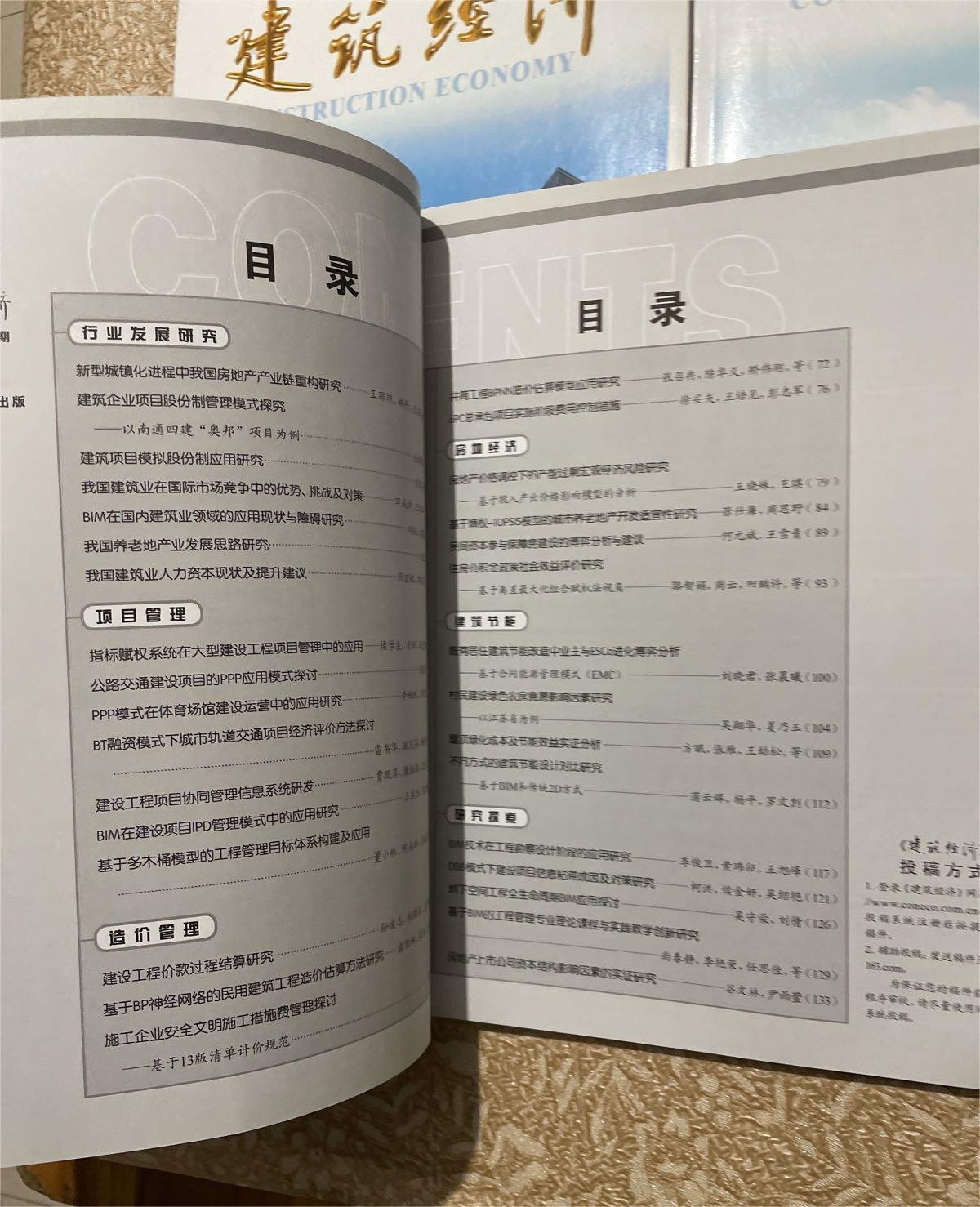 杂志主要栏目包括行业发展论坛、企业经营管理、项目管理、法律合约、招标投标、造价咨询等。
