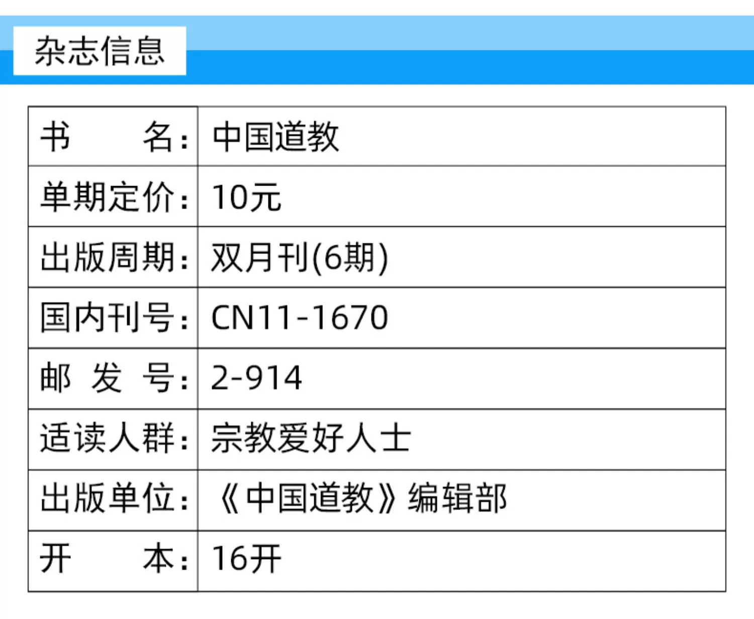 《中国道教》(双月刊)创刊于1987年,中国道教协会主办。