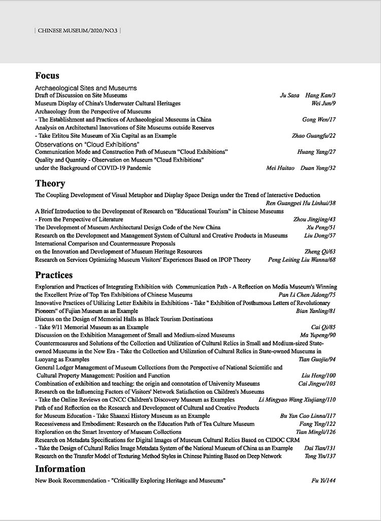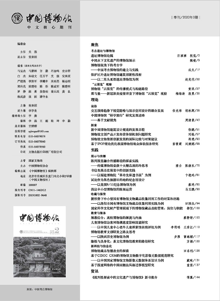 《中国博物馆》(季刊)创刊于1984年,由中国博物馆学会主办。系中国博物馆界的领军学术刊物。《中国博物馆》要适应时代发展,定位于代表全国最高水准、进行国际交流的开放型、创新型的博物馆界学术期刊。要大力介绍国际博物馆学界的动态,在保持原有学术水平和学术品位的基础上,进一步理论联系实际,加强与其他学科的交流,对带有全局性的学术热点问题和重大政策问题要有所反映;要定期举办学术研讨会,推动学术创新。同时要进一步解放思想,搞好杂志的经营。旨在推动中国博物馆学研究,促进中国博物馆事业发展,交流国内外博物馆学术信息和工作信息。