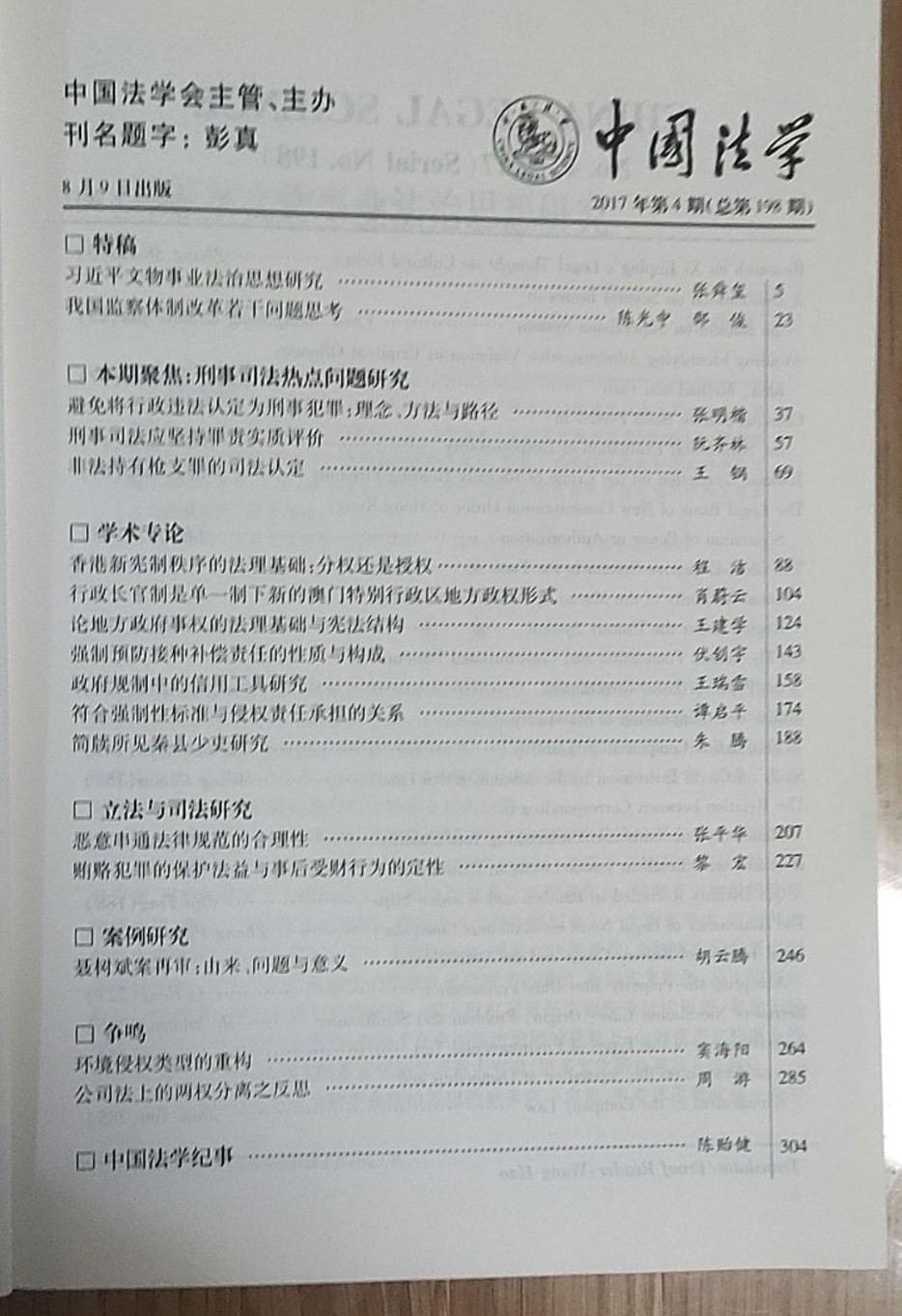 《中国法学》不断推出新人新作,成为我国培养造就法学研究学术带头人的摇篮。主要栏目:有走向法治之路、专题论坛、立法研究、司法改革与司法公证、立法研究、各科专论、讲座与争鸣、判例评析。