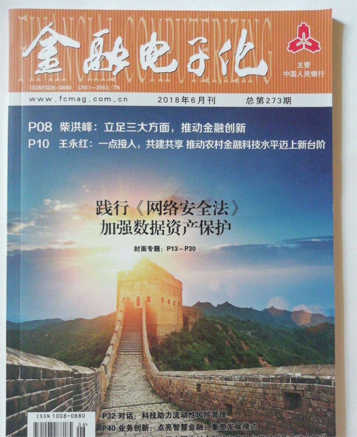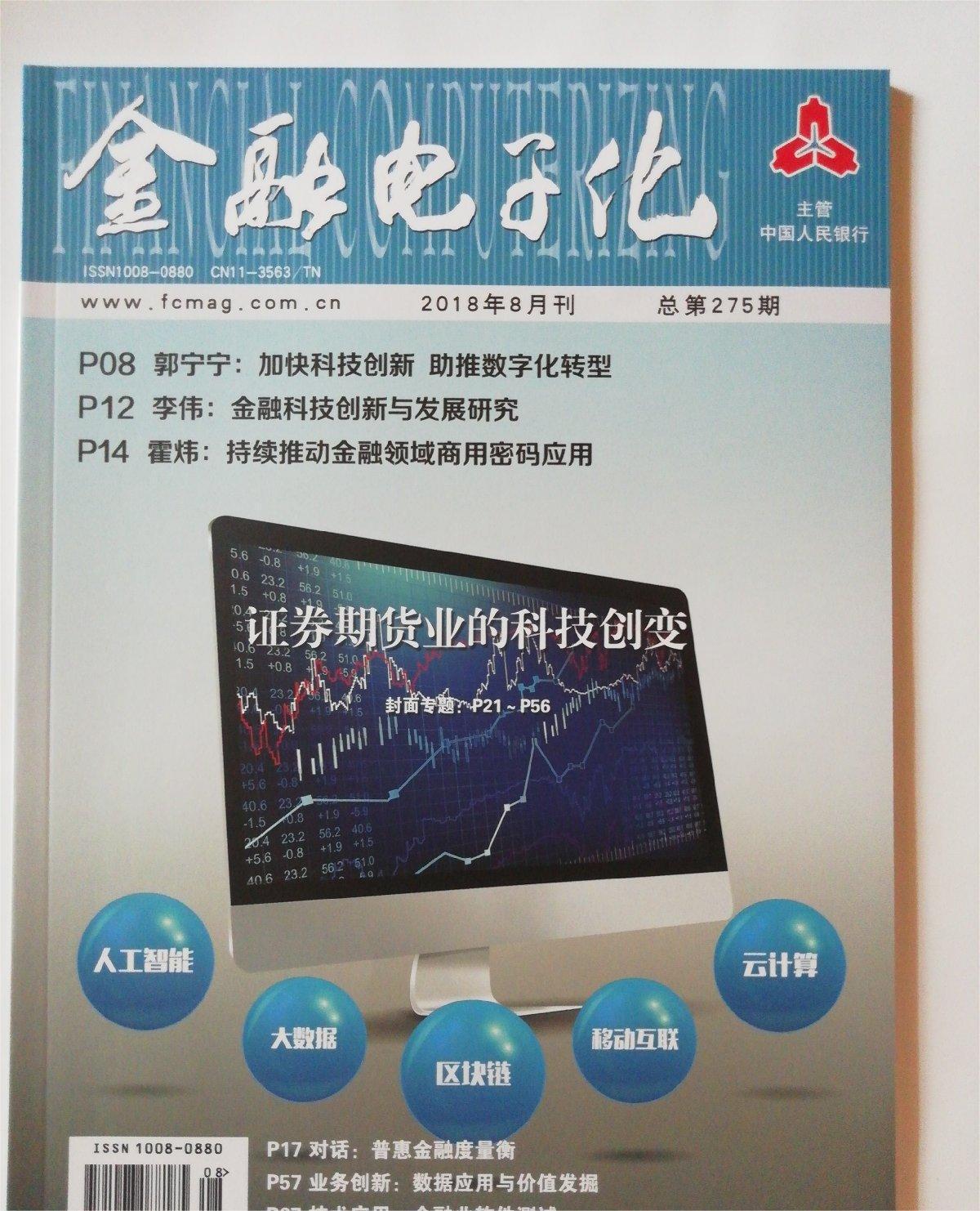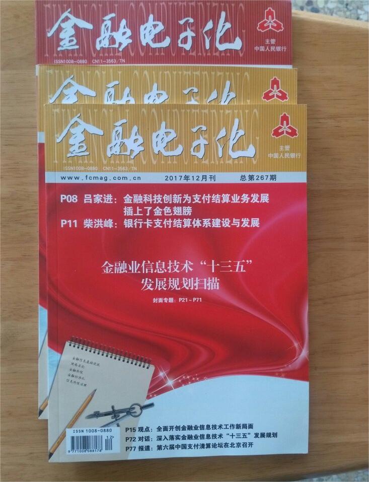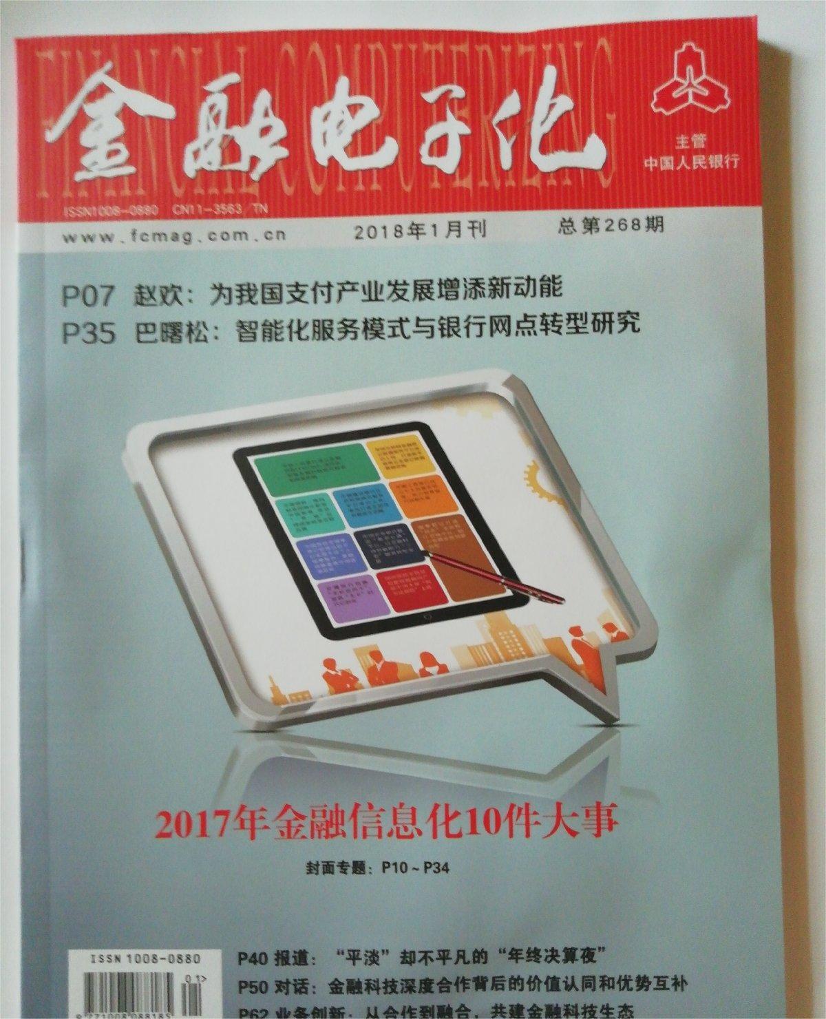 《金融电子化》(月刊)创刊于1992年,是中国人民银行主管,中国金融电子化公司主办的国家级科技期刊,是中国金融信息科技主导期刊,办刊宗旨是面向金融界和计算机与通信产业界,为中国的金融电子和电子产业服务。