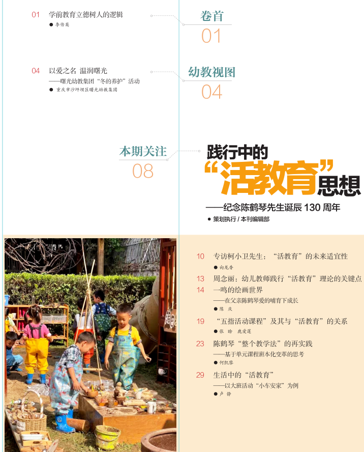 《今日教育(幼教金刊)》是重庆市教育系统唯一面向幼儿教育工作者对幼儿教育进行指导的省级正式刊物。本刊集合了全市最专业的幼教专家,最丰富的幼教资源,最优质的制作班底,对杂志内容进行全新构架,关注幼儿教师的生存现状、引领幼儿教师的教学研究、陪伴幼儿教师的学习生活,是一本帮助幼儿教师成长,是集实用性、指导性、时尚性于一体的综合类期刊。荣获重庆市期刊优秀作品二等奖。
