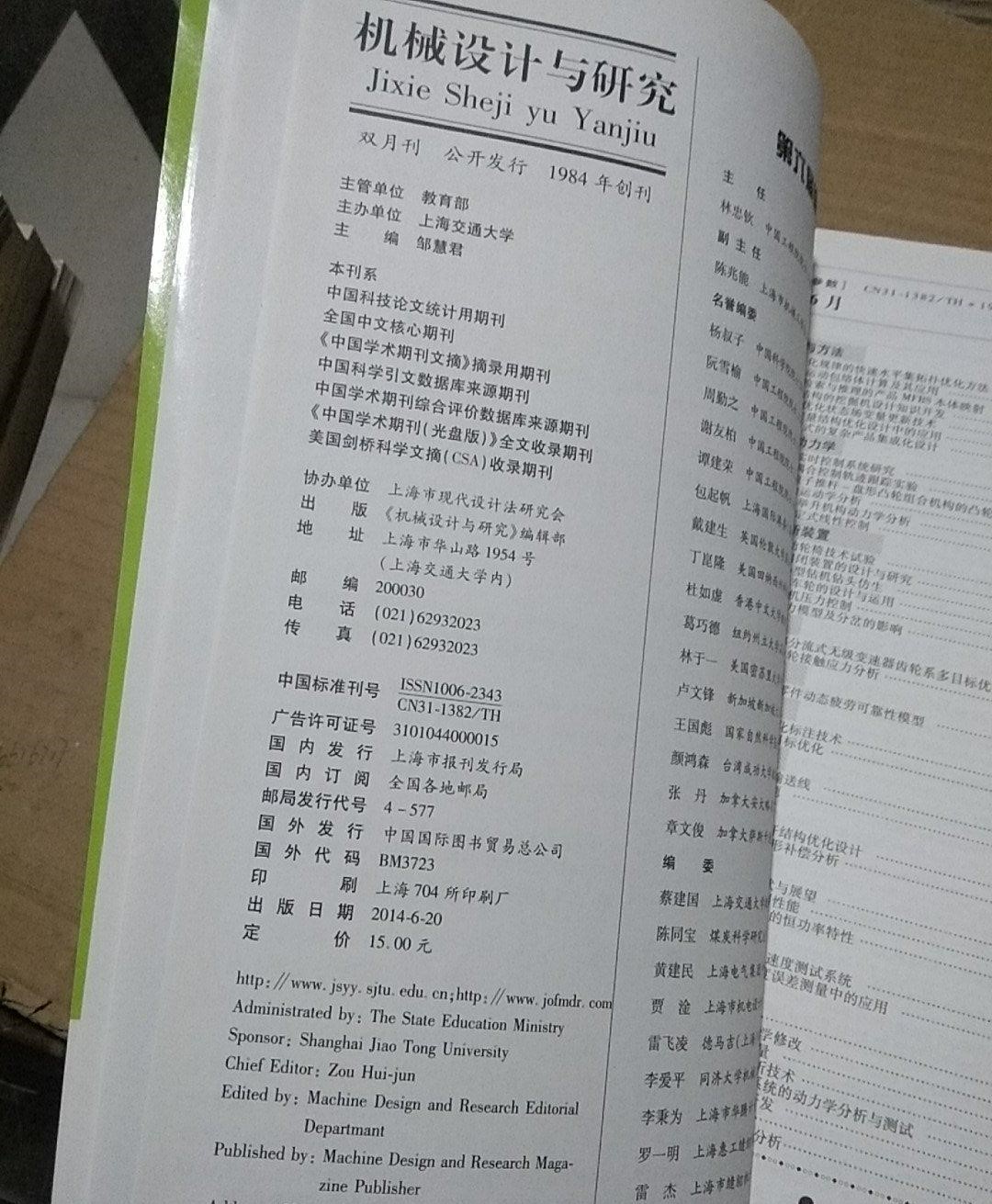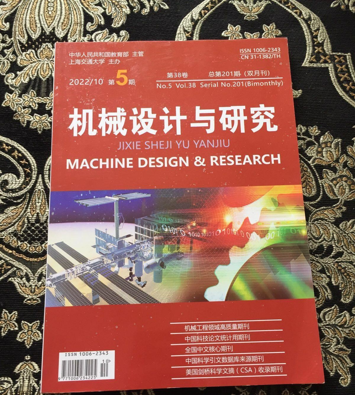 《机械设计与研究》获全国中文核心期刊、中国科技论文统计用刊。