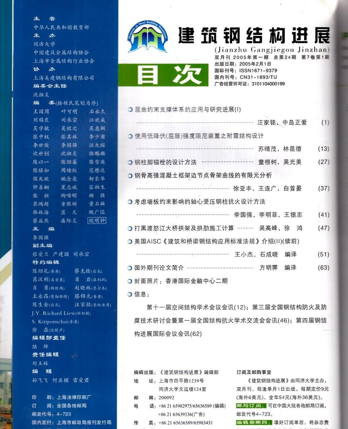 《建筑钢结构进展》以推动我国建筑钢结构事业的发展,促进相关理论研究及实用技术与新型产品开发,加强国内外学术交流,加快科研成果向生产力转化为宗旨,为广大从事建筑钢结构研究、设计、制作、安装和施工以及维修防护等相关领域的工程技术人员、高等院校师生和科研工作者服务。