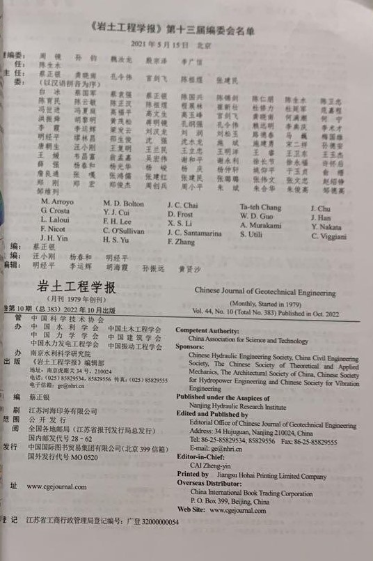 《岩土工程学报》是由中国科学技术协会主管,由中国水利学会、中国土木工程学会、中国力学学会、中国建筑学会、中国水力发电工程学会、中国振动工程学会六个全国性学会联合主办的学术性科技期刊。《岩土工程学报》创办于1979年,在江苏南京登记,由南京水利科学研究院承办,国内外公开发行。