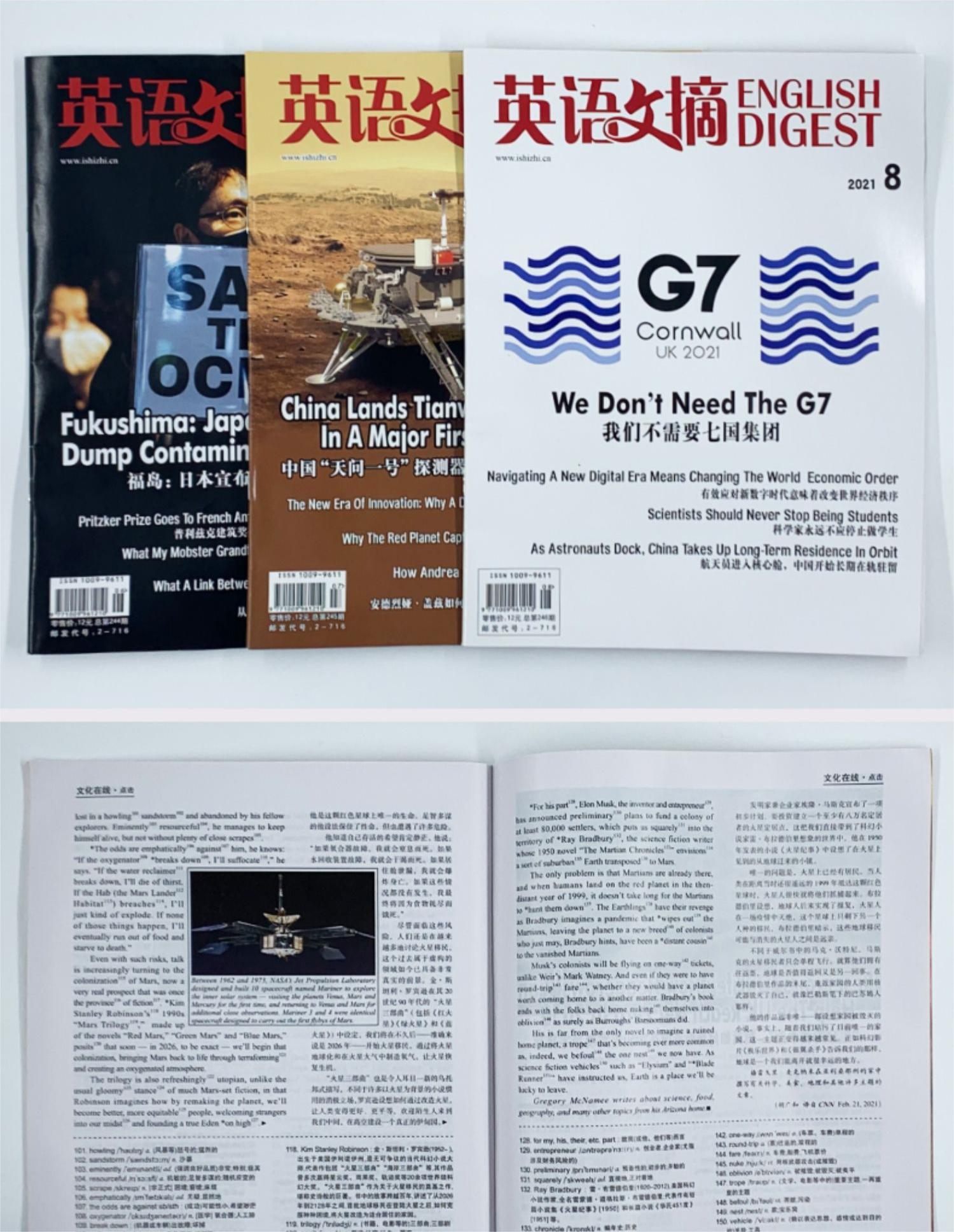 拥有《英语文摘》既可与全球读者同步读到新闻,又可从时政英文中学到地道的英语。