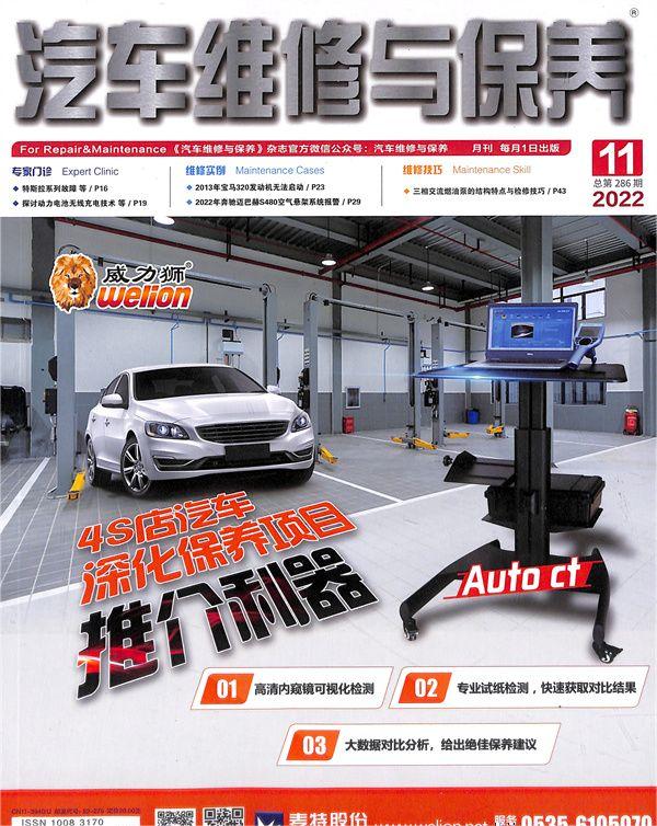 《汽车维修与保养》杂志原名《微型轿车》,创刊于1995年,由中国北方车辆研究所、美国国际数据集团(IDG)、美国Hearst出版公司MOTOR杂志联手,以介绍国内外各种车型的维修与保养知识、汽车维修设备与零部件知识为主的汽车技术服务类专业杂志。MOTOR杂志是享誉全球的的汽车维修行业技术服务类杂志,我们将借MOTOR之优势,把世界范围内的最新汽车维修与保养知识以及维修设备和零部件产品信息介绍给中国汽车维修行业,使《汽车维修与保养》杂志成为适合于中国汽车维修市场、满足中国汽车维修行业从业人员和普通私家车主需求的一流技术服务类刊物。我们的目标读者是维修厂经理、管理人员、技术人员、汽车维修行业及其相关企业的专业技术人员。近年来汽车专业媒体调查数据表明,我刊市场覆盖率居于前列。