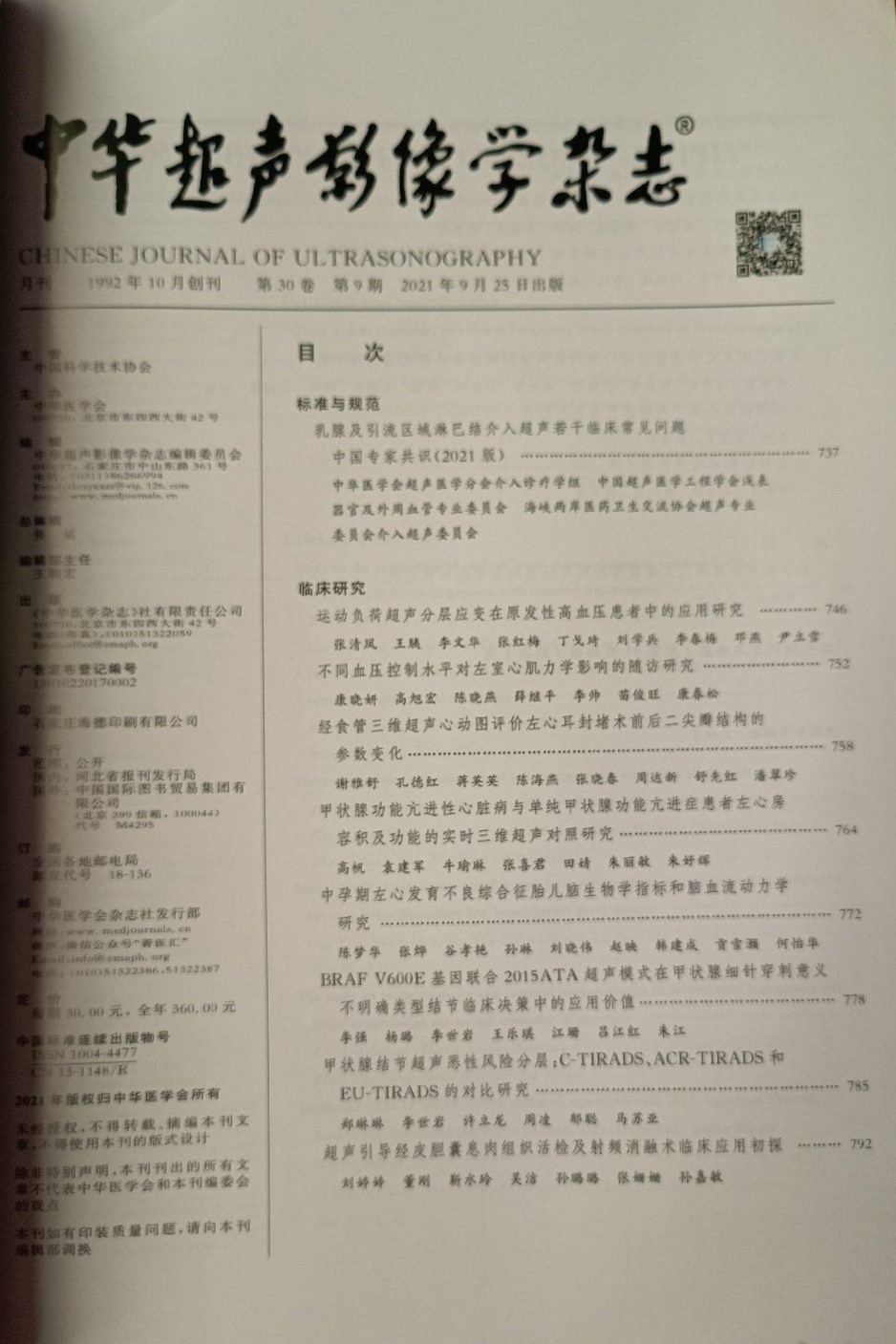 中华超声影像学杂志 《中华超声影像学杂志》(月刊)创刊于1992年,本刊是中华医学会系列医学期刊中的超声医学专业学术期刊,河北医科大学编辑出版。