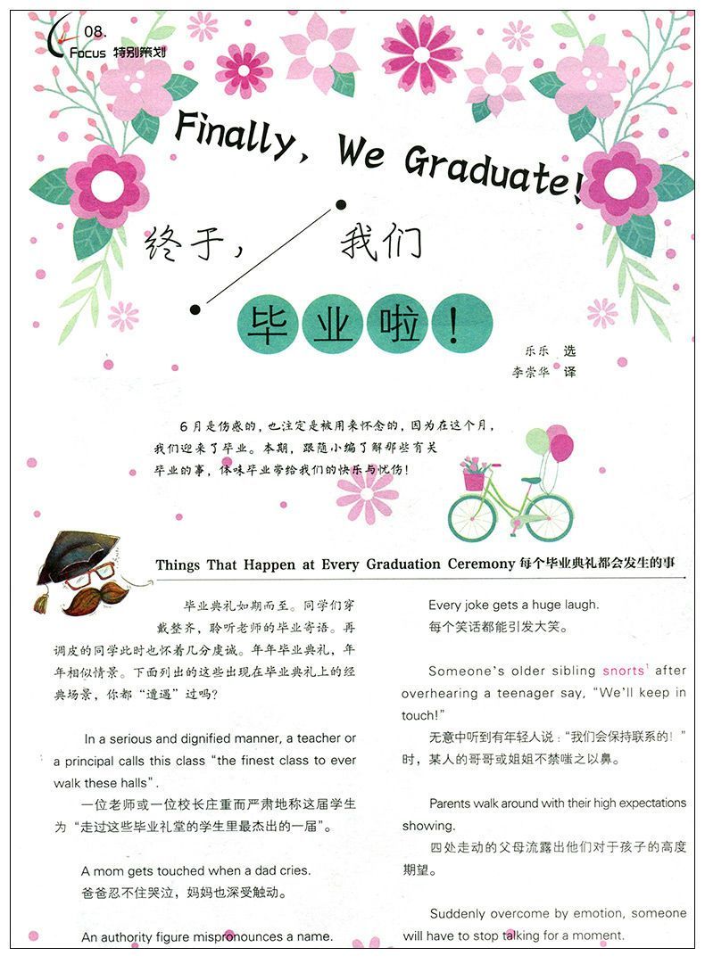 《英语广场》系为广大中初级英语学习者量身定做的、以“轻松读原作,快乐学英文”为出刊宗旨的月刊。每期精选国外最新资讯,触及青少年最感兴趣话题与人物,英汉对照,难度适中,堪称国内最时尚的英语读物之一。其中“美文诵典、青春话题、心灵鸡汤、音乐、人物、发现”等经典栏目让读者历年来爱不释手,读者在获得心灵启迪的同时,全面提升英语词汇与阅读能力。“语法答疑、英语错误、脱口而出”等实用英语栏目,让读者在轻松阅读的同时进一步巩固中学语法及句法知识,是一本不可多得的英语学习杂志。该刊已创刊16载,现已发展成中国知名品牌刊物,为中国期刊方阵之双效期刊,多次被湖北省评为优秀期刊。其系列刊物及图书音像制品在全国已发行数千万册,培养了一批又一批莘莘学子。