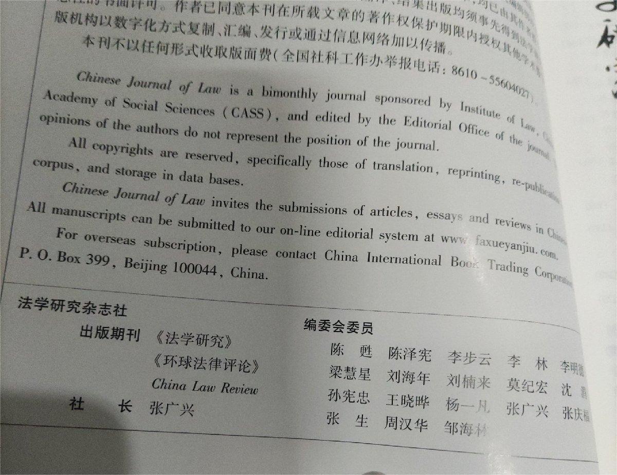 《法学研究》(双月刊)创刊于1979年,是由中国社会科学院主管、中国社会科学院法学研究所主办、法学研究编辑部编辑、法学研究杂志社出版的法学刊物。前身是中国政法学会1953年创刊、1957年停办的《政法研究》。《法学研究》刊载有关中国法治建设重大理论与实践问题的论文。坚持“百花齐放,百家争鸣”的办刊方针,坚持学术性、理论性的办刊宗旨,坚持高水平的用稿标准,以展现我国法学理论最新和最高水平的研究成果。主要读者为法学教学和理论研究工作者,立法和司法工作者,法学专业的本科生和研究生,律师、行政执法人员和法学理论爱好者。获奖情况:中文核心期刊(2011)、中文核心期刊(2008)、中文核心期刊(2004)、中文核心期刊(2000)、中文核心期刊(1996)、中文核心期刊(1992)。