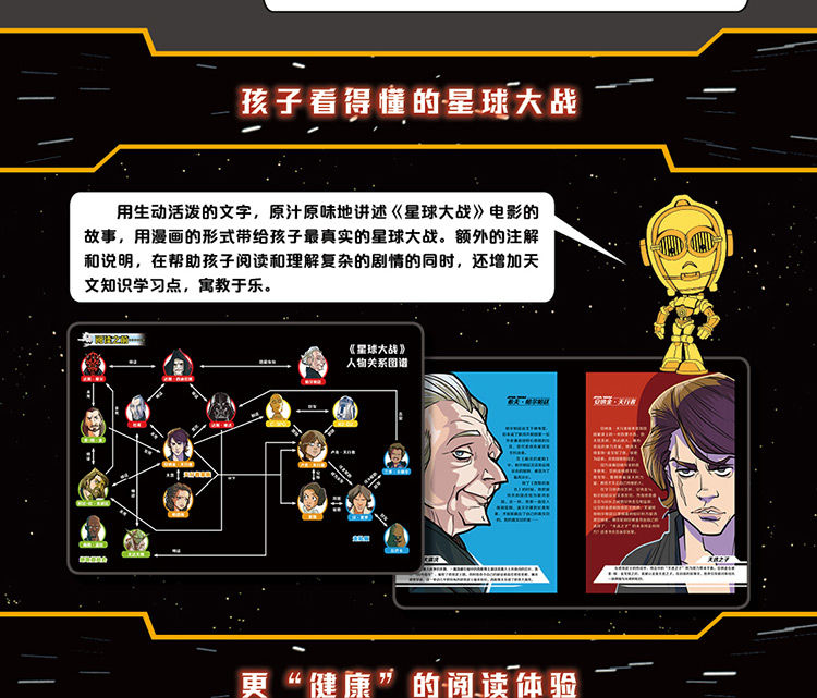 看原版“星战”漫画故事,了解“星战”庞杂知识,解读“星战”前沿科技。和“星战”人物同游奇幻的太空世界,深入探索“星战”的繁复结构,共享“星战”搭建的宏大宇宙。
