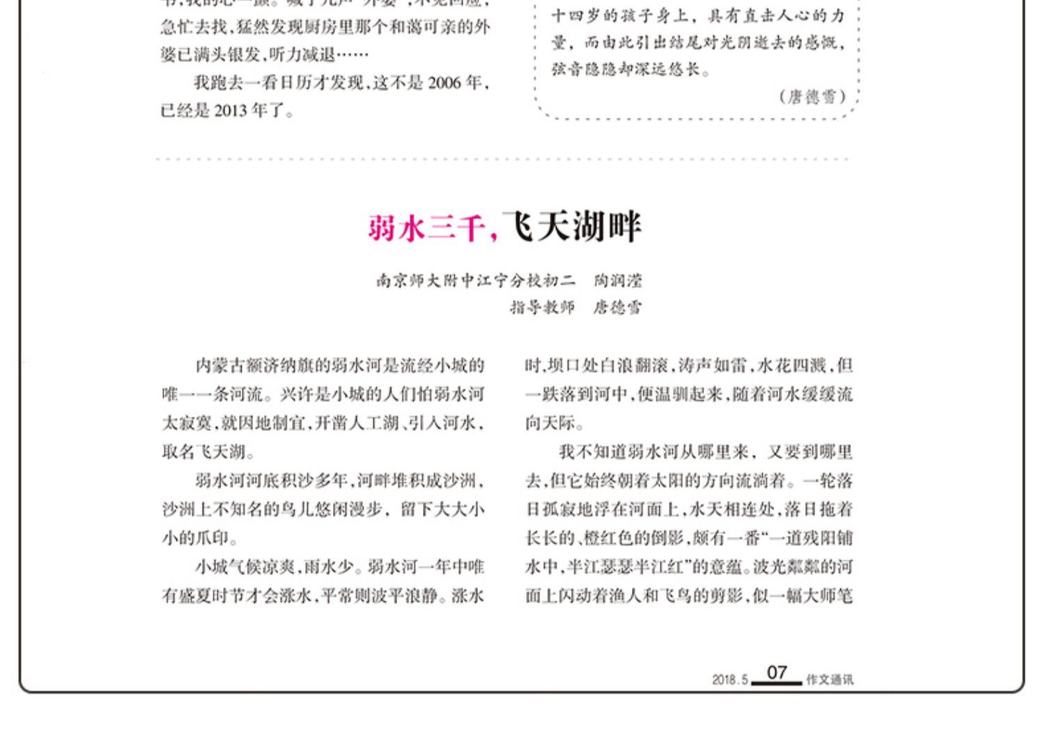 《作文通讯初中版》适合于初中一至三年级学生,全国十三所名校联袂打造,百名特级教师全力推荐,三十年品质始终如一。是中学作文良方,把握命题方向。