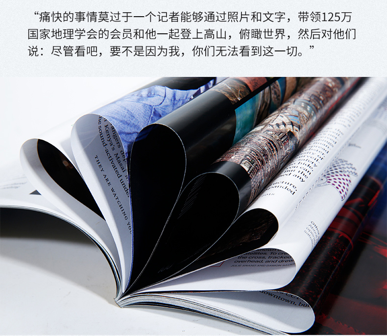 杂志每年发行12次(一月一次),但偶尔有特版发布则不在此限。杂志的内容为高质量的关于社会、历史、世界各地的风土人情的文章;其印刷和图片之质量标准也为人们所称道。这也使得这本杂志成为来自世界各地的摄影新闻记者们梦想发布自己照片的地方。早在20世纪初期,国家地理杂志即已经开始使用一些当时罕见的彩色照片。