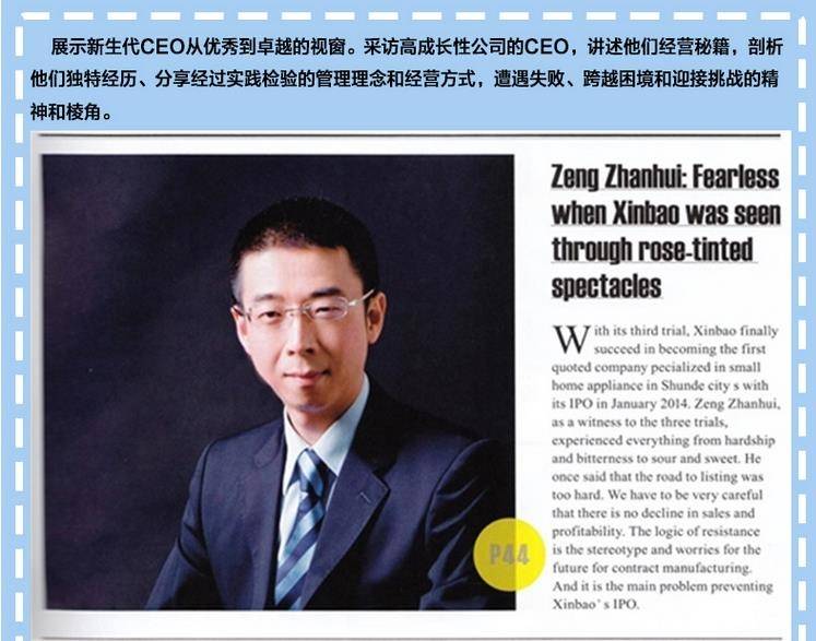 独家企划-大型报道对企业发展有重大影响的管理理念,经营案例,典型事件和人物,揭示商业思想并提供系统实用的解决方案。CEO特区-CEO交换、分享资源、思想及解决方案的平台,内设“CEO学”、“领导力”、“CEO观察”等栏目。