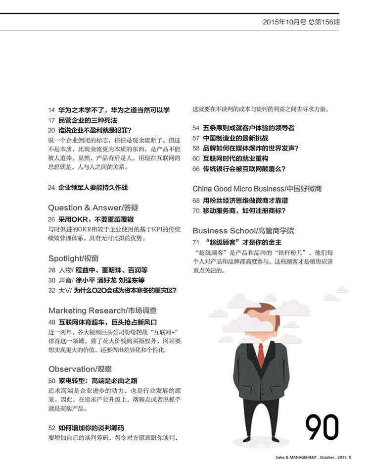 《销售与管理》主要栏目:封面、锐观察、特写、管理新知、专题、高管商学院、企业战略等。