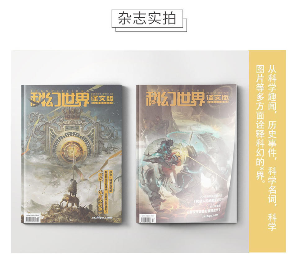 《科幻世界》译文版,刊发一流的科幻小说,提供最新的科学、幻想资讯。创刊于1979年,发行量高达30万份,是中国乃至全世界发行量最大的科幻杂志,曾获得“世界科幻协会最佳期刊奖”,并入选“中国百种重点社科期刊”,是中国科幻期刊中一面历久弥新的金牌。