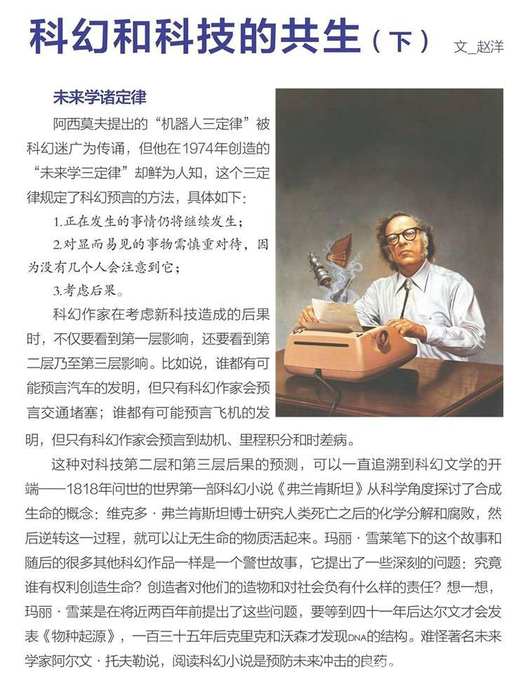 科学:介绍最新的前沿科学知识,包含物理、生物、以及其他各种常出现在科幻小说中的话题。一般以彩页形式出现在封二和中间彩页。